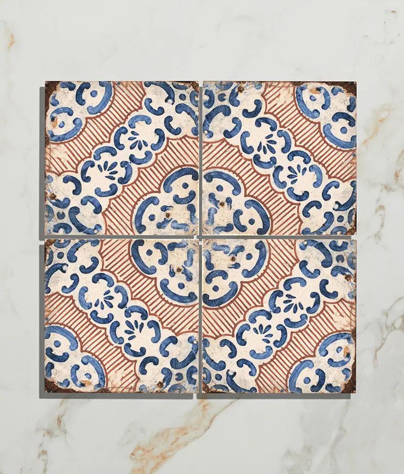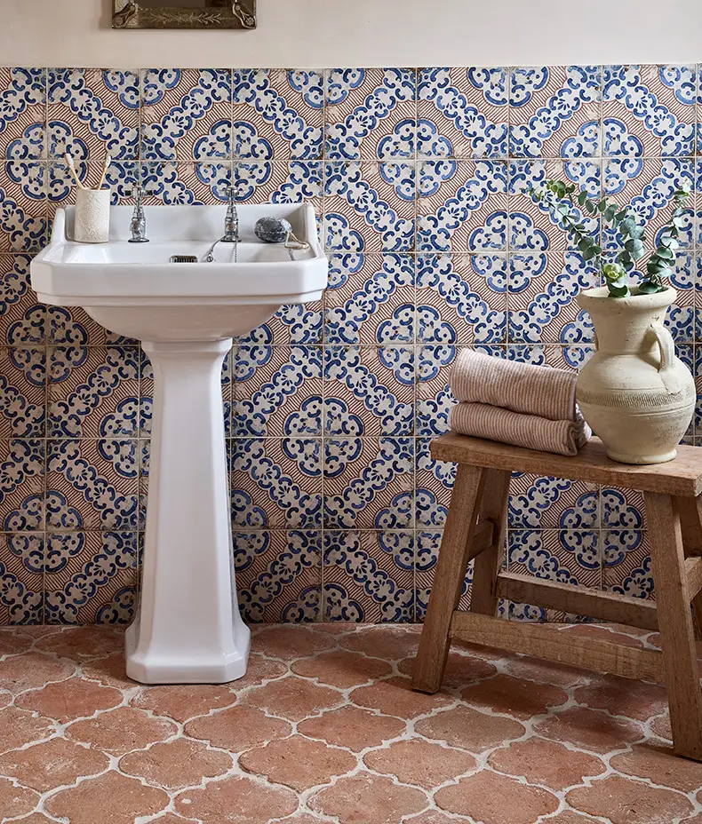 Bring Mediterranean charm into your home with the elegant Sardinia Porcelain Masseria 20x20cm tile. With its beautifully curated blend of blue, cream and terracotta hues, this patterned porcelain tile adds warmth, character and artisan style to both modern and traditional interiors.